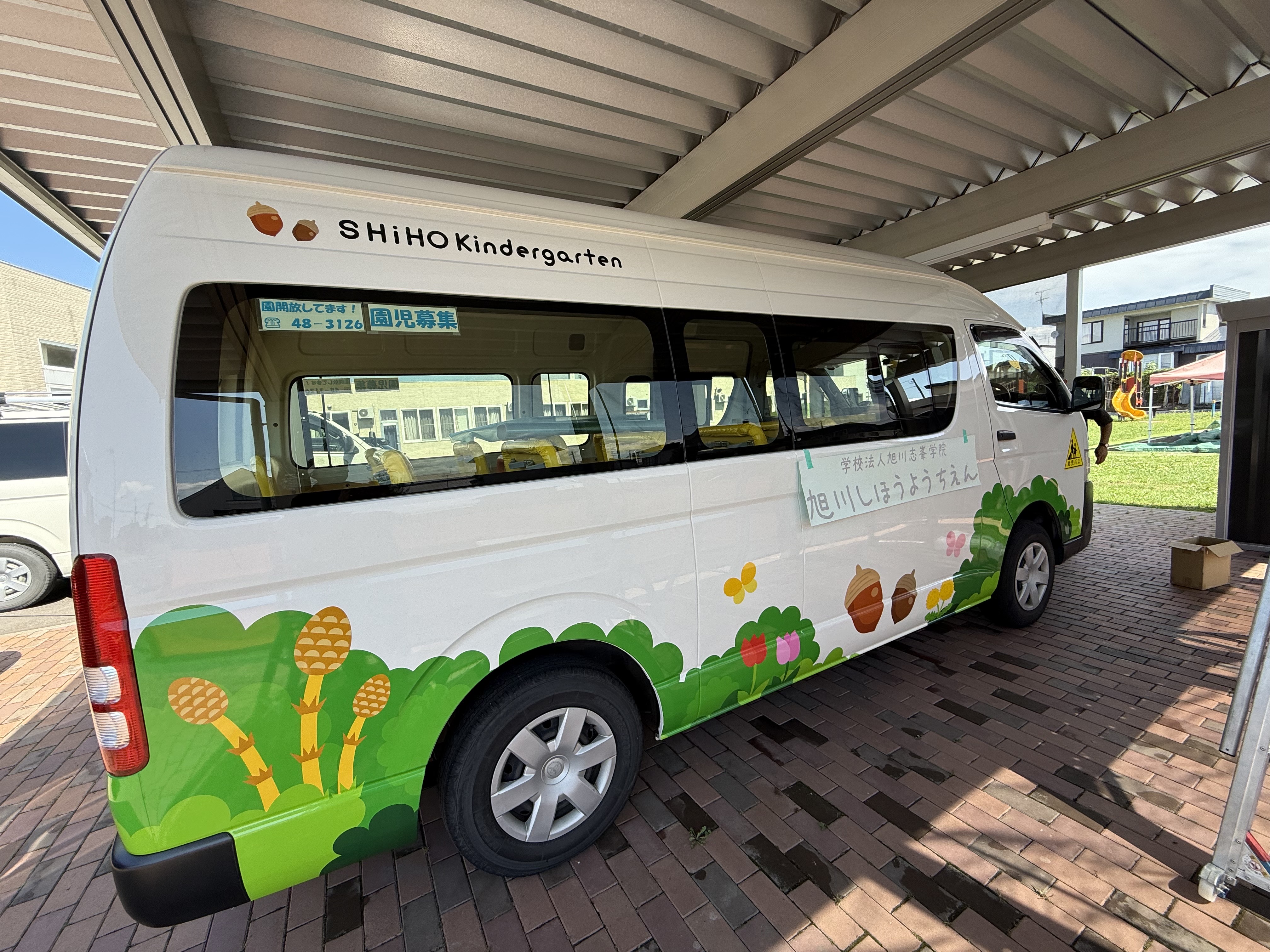 住宅まわりの塗装工事だけでなく、各種施設や車両への対応も行っています。今回は塗装工事の一環として、幼稚園バスのカッティング施工を実施しました。